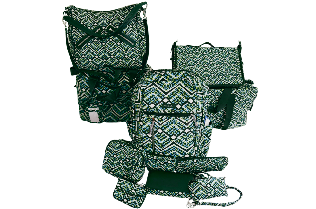 Travel in style with this assortment of Vera Bradley bags ... perfect forevery day or your next vacation! The following are included in this lot, all with the retired blue and green "Rain Forest" pattern: - Triple Compartment Travel Bag - Miller Travel Bag - Grand Backpack - Convertable Satchel/Shoulder Bag (Two Straps to Carry as Cross-Over/Shoulder Bag or Satchel) - Hanging Accessory Organizer Bag - Audrey Wallet with RFID Protection - Jen Zip ID Case - Makeup Bag - Coin Bag - Pencil Bag - Lanyard with Keyring - Luggage Tags for All Large Bags This is a great lot of new (old stock) bags in a retired pattern and with many of the bag styles no longer available.